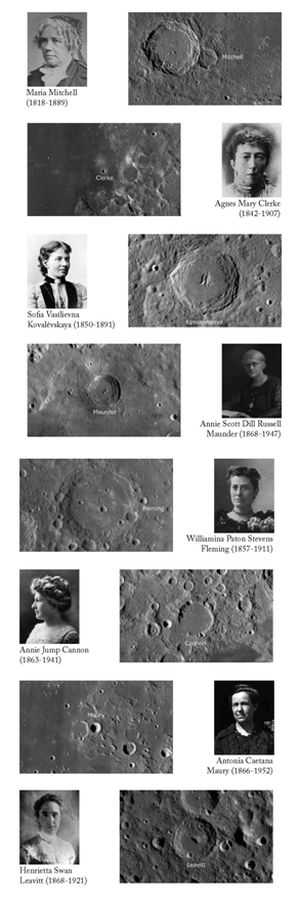 «Las mujeres de la luna», escrito a cuatro manos por Daniel Roberto Altschuler y Fernando J. Ballesteros, intenta acercarnos una parte de la historia de nuestra tierra que tiene su reflejo en su único satélite. En la luna hay millones de cráteres, aproximadamente unos 300000 son mayores de 1km y de estos 1586 han sido nombrados en honor de filósofos y científicos. Tan solo 28 llevan nombre de mujer. Entre esas 28 mujeres hay científicas, astronautas, filántropas y una santa. La mitad de esos cráteres se encuentran en la cara oculta de la luna.