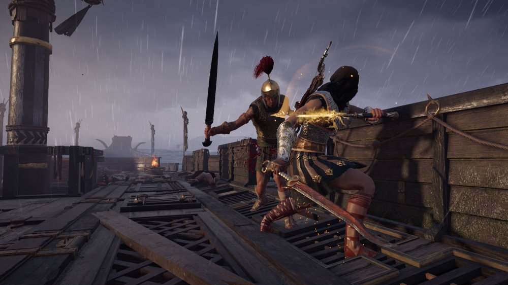 He procurado no usar imágenes que desvelen demasiado, pero claro, no dejan de ser fragmentos sacados del propio juego, cualquiera puede ser un «spoiler» en sí mismo. Si ya estás disfrutando de Assassin’s Creed Odissey o piensas hacerlo más pronto que tarde quizá sea mejor que no pulses el «play». Para todos los demás…